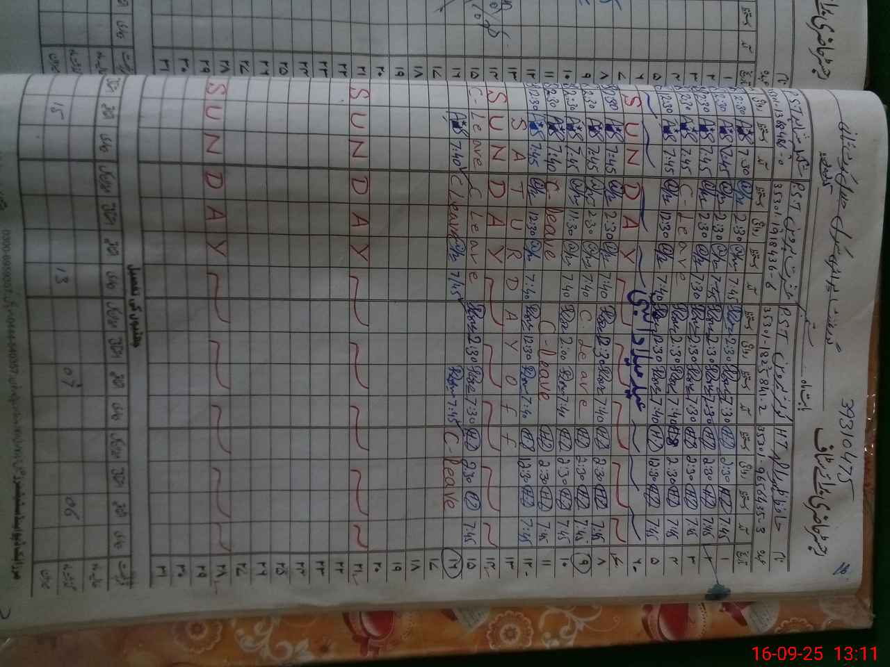 | CNIC | Full Name | Designation | R/C | Absence During Last Calender Month |
