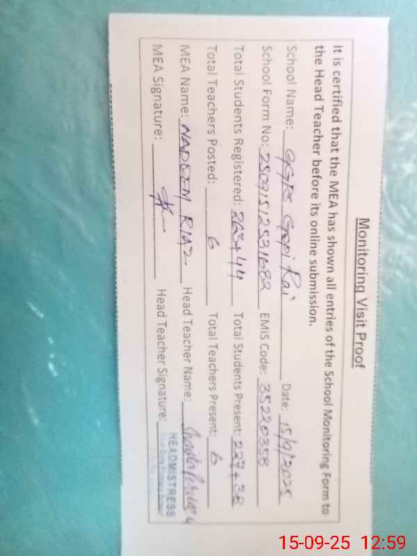 | EMIS Code: 35220358 | Name of School: GGPS GOPY RAI | |||