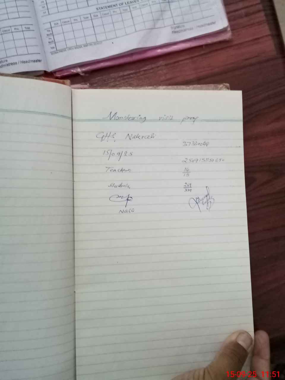 | Attendance Register | Head Teacher | MEA with School | Visit Proof |