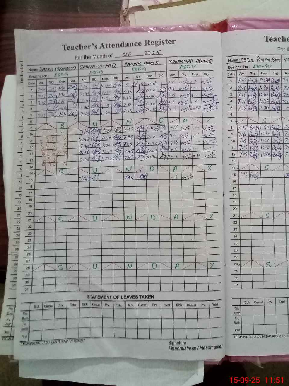 | Name: Mu**** Sa**** Designation: (School Headmaster's/Headmistress's) SST IT Incharge Hm Phone/Cell Number: 03**** |