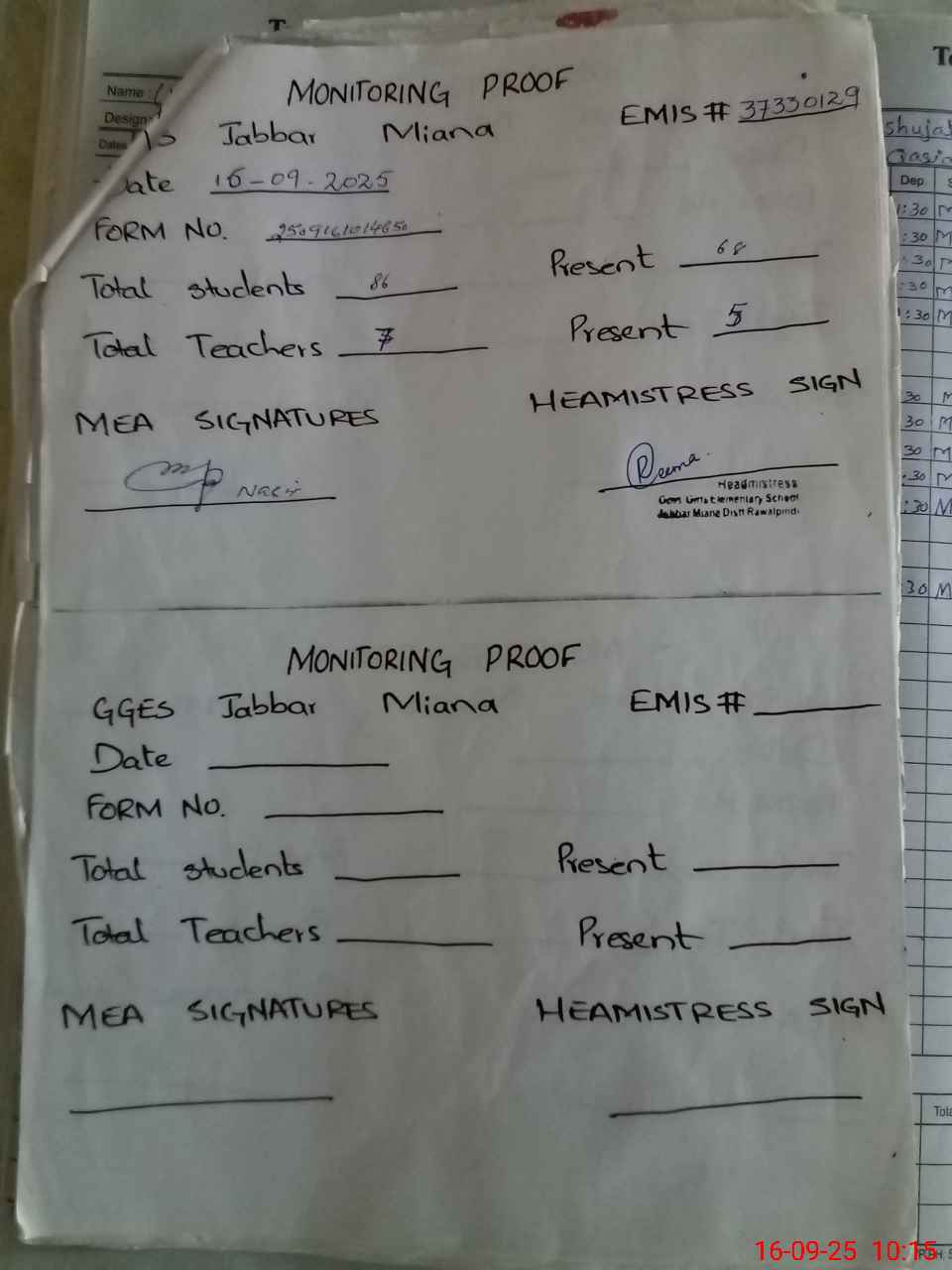 | EMIS Code: 37330129 | Name of School: GGES JABBAR MIANA | |||
