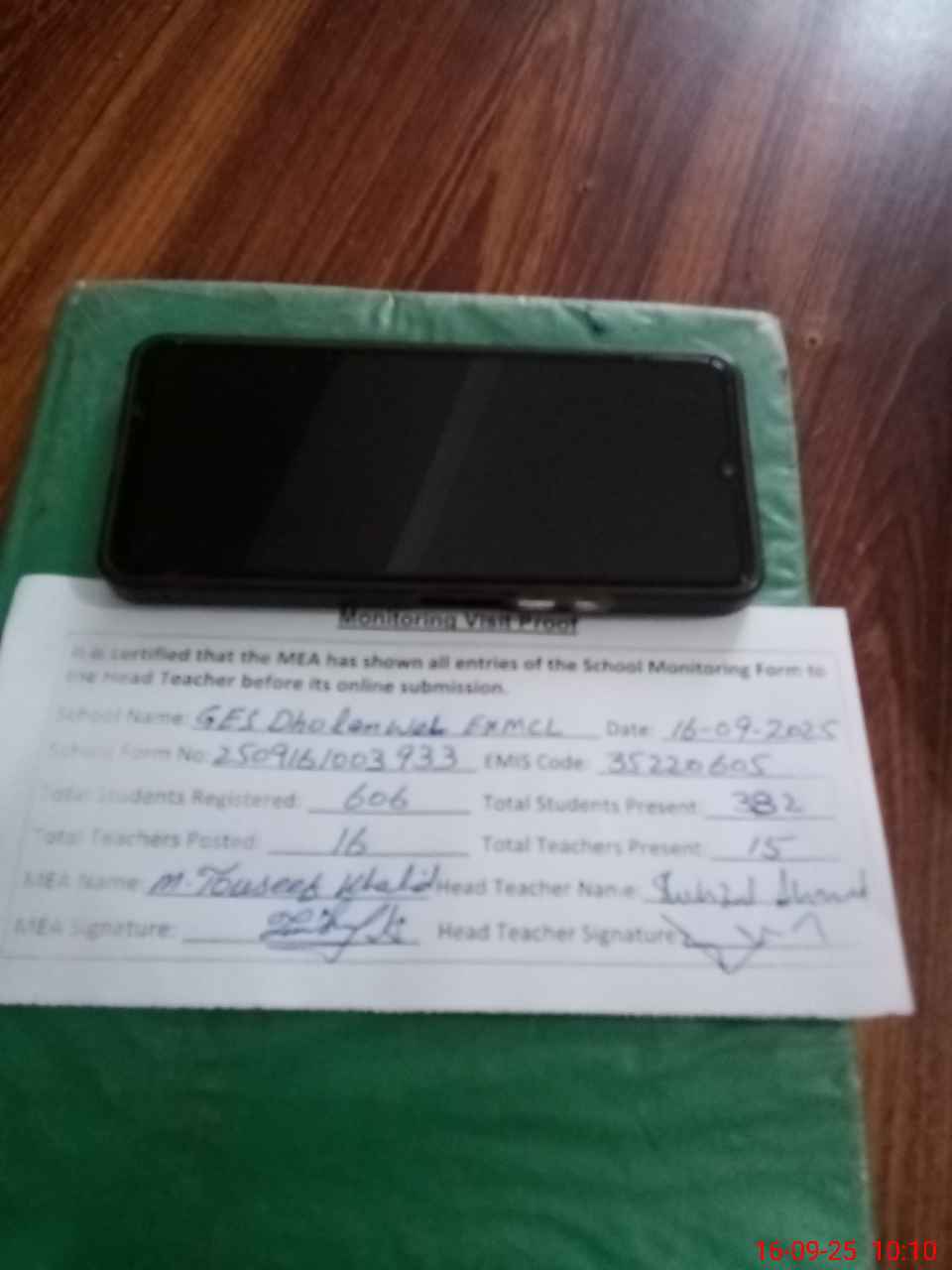 | EMIS Code: 35220605 | Name of School: GES DHOLANWAL (EX-MCL) | |||