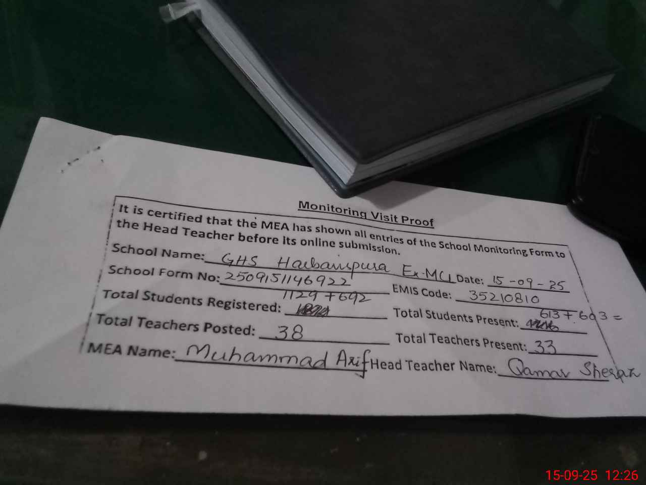 | EMIS Code: 35210810 | Name of School: GHS HARBANS PURA (EX-MCL) | |||