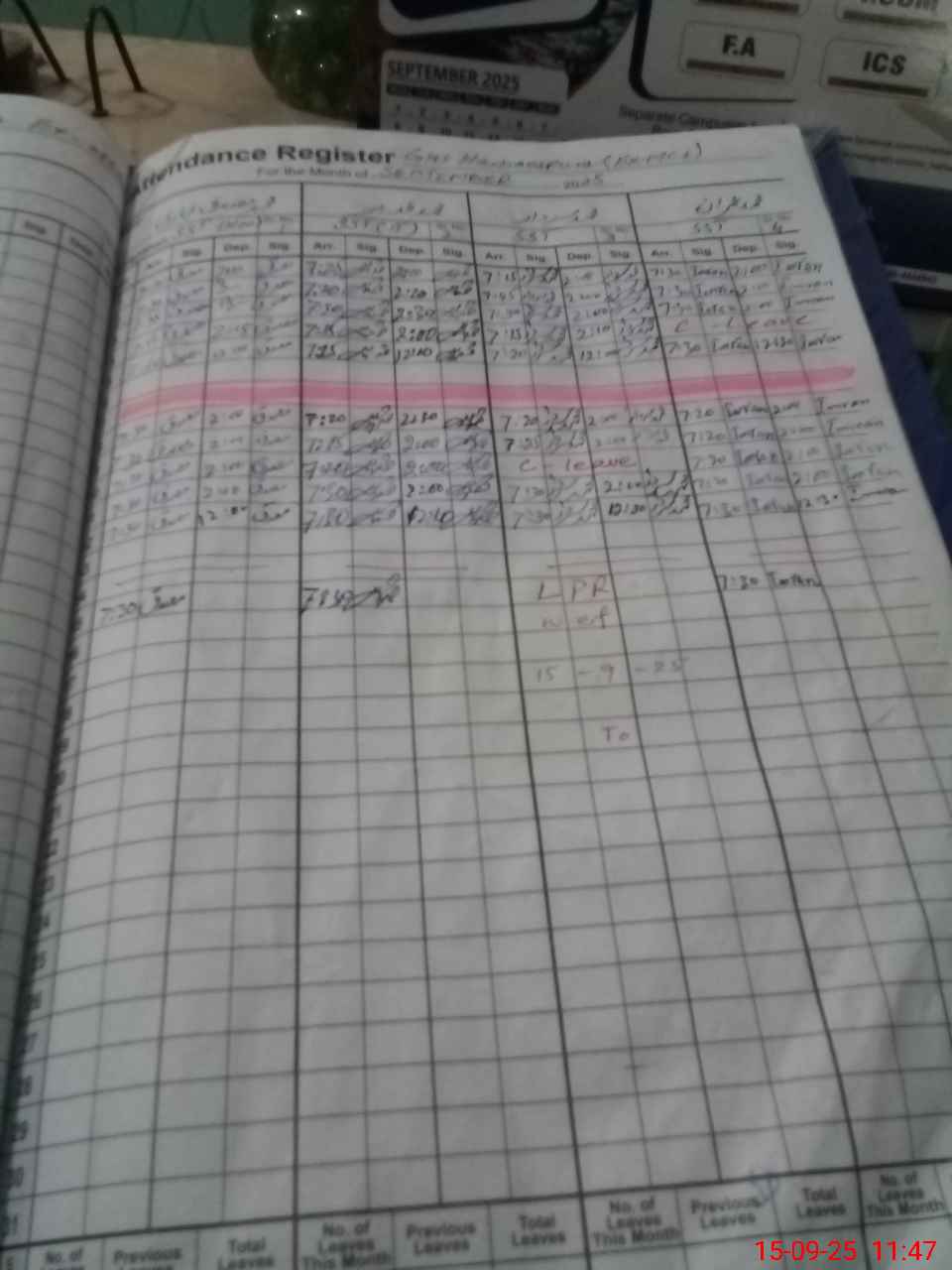 Leave Type | Remarks for today (Leave,Training, Exam,Absent,Late, Other duty) |