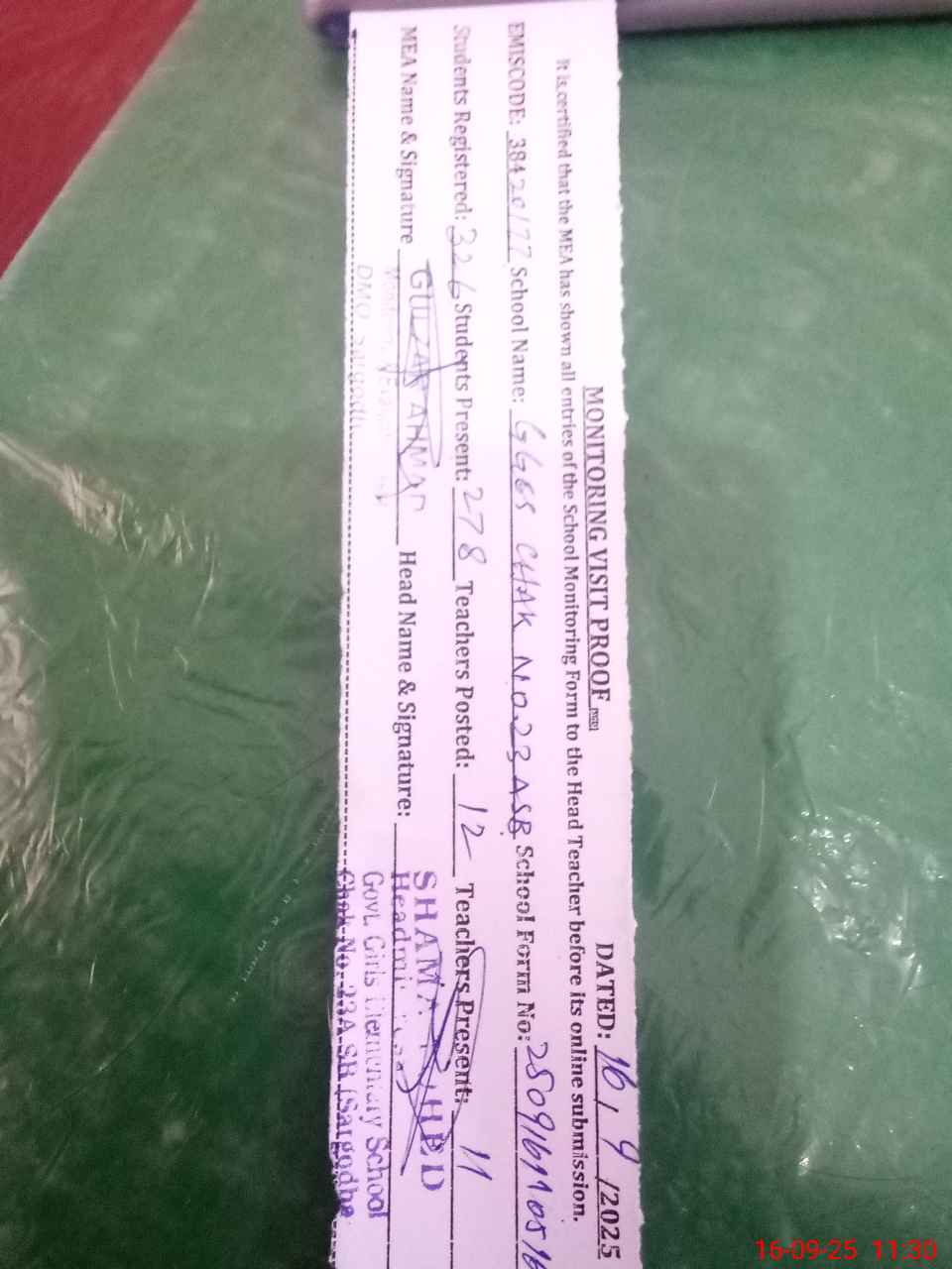 | EMIS Code: 38420177 | Name of School: GGES CHAK NO.23 ASB | |||