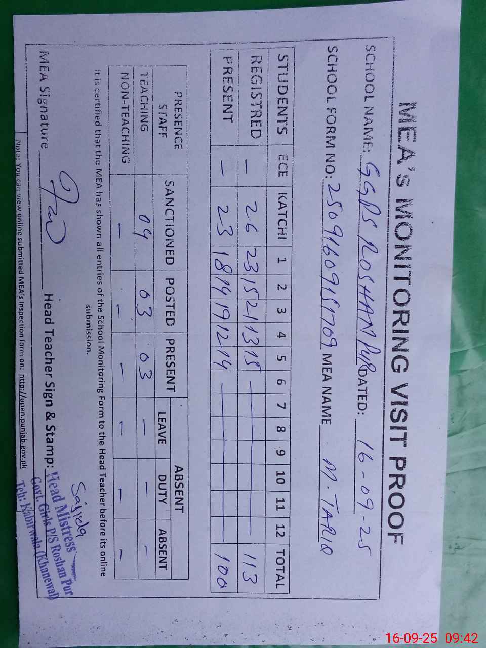 | EMIS Code: 36410462 | Name of School: GGPS ROSHAN PUR, ABDUL HAKIM | |||