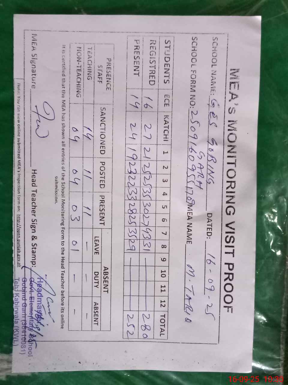 | EMIS Code: 36410081 | Name of School: GES GOBIND GARH, ABDUL HAKIM | |||