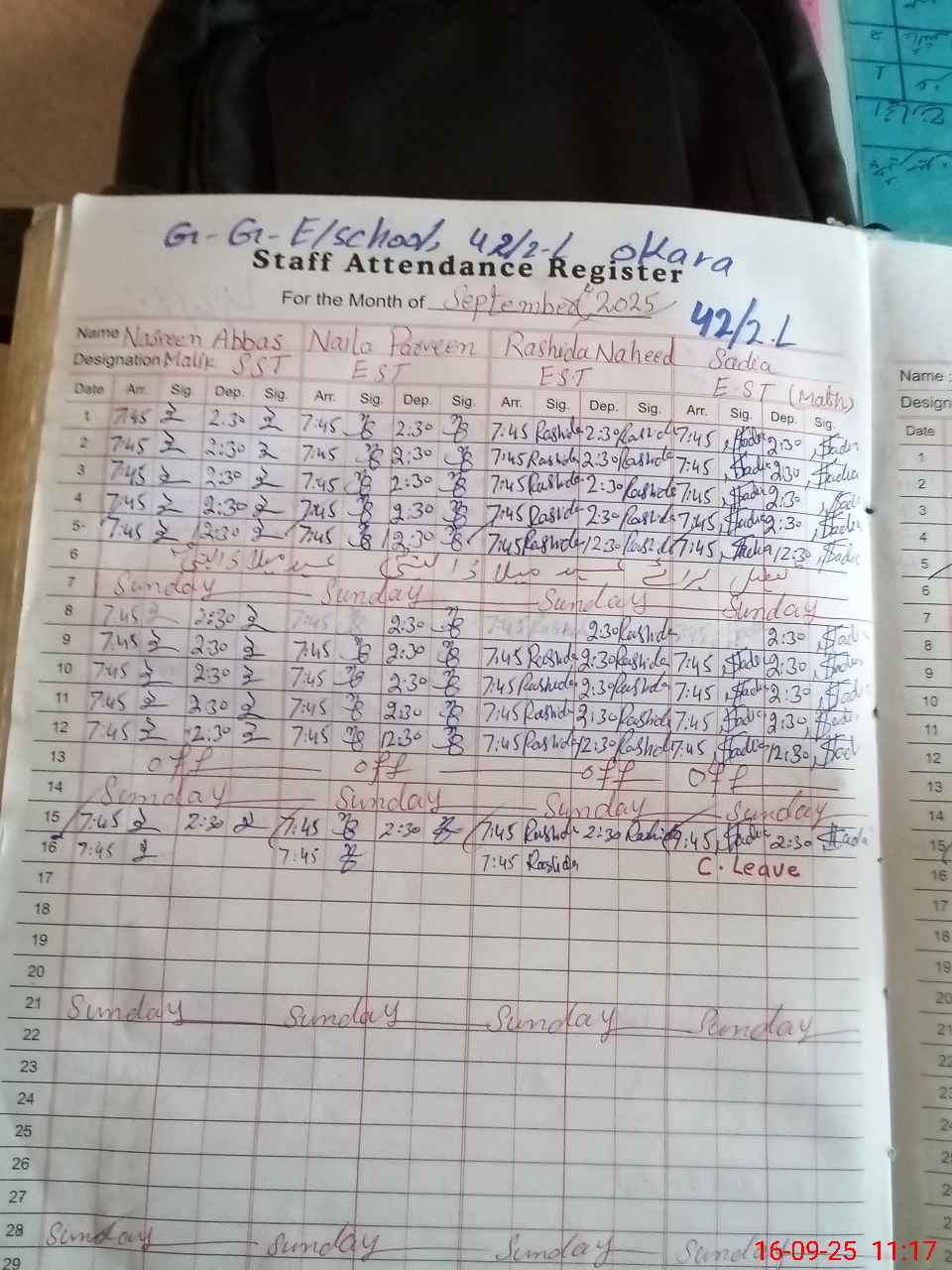 | District: OKARA | Tehsil: OKARA | Markaz: 4/4.L-FEMALE | Level: Middle | |