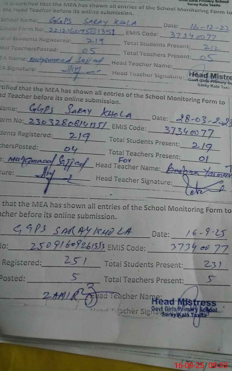 | EMIS Code: 37340077 | Name of School: GGPS SARAY KHOLA | |||