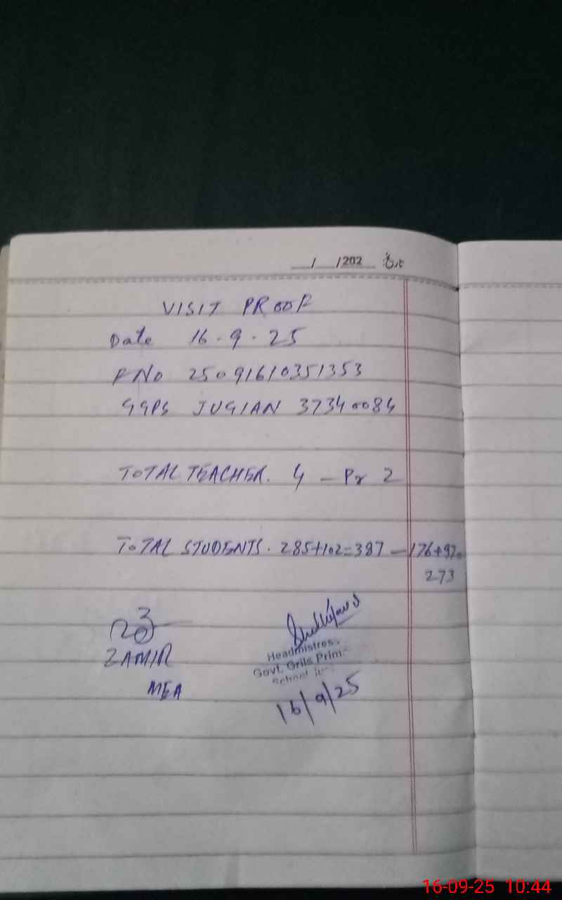 | Attendance Register | Head Teacher | MEA with School | Visit Proof |