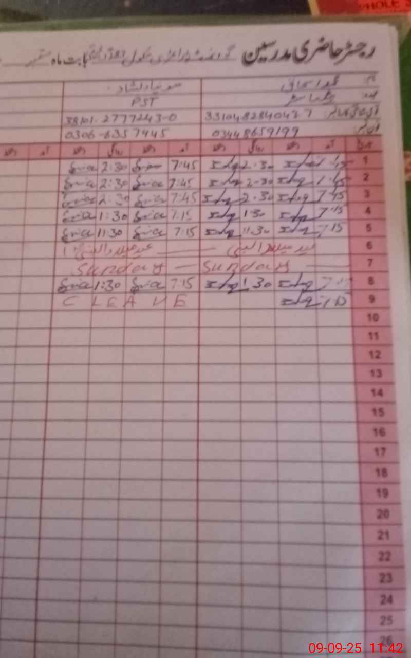 | Name: Mu**** Is**** Designation: (School Headmaster's/Headmistress's) PST Phone/Cell Number: 03**** |