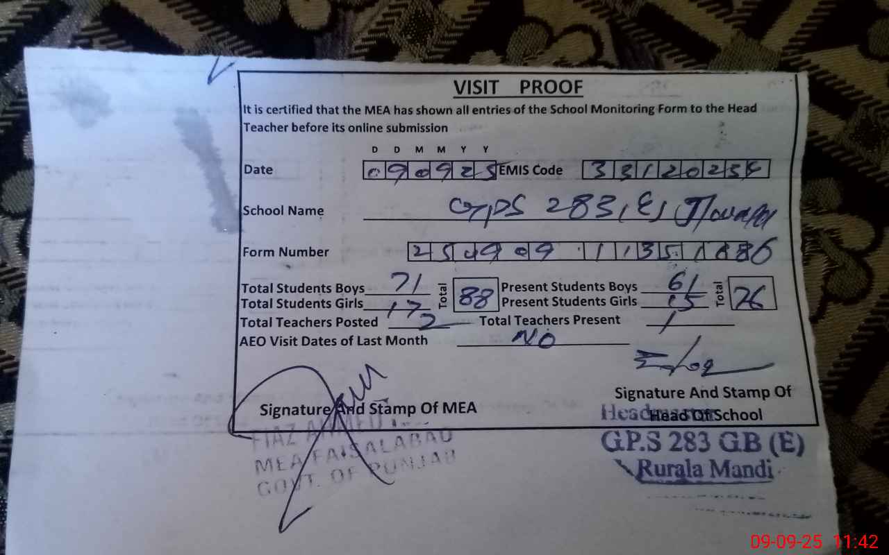 | Attendance Register | Head Teacher | MEA with School | Visit Proof |