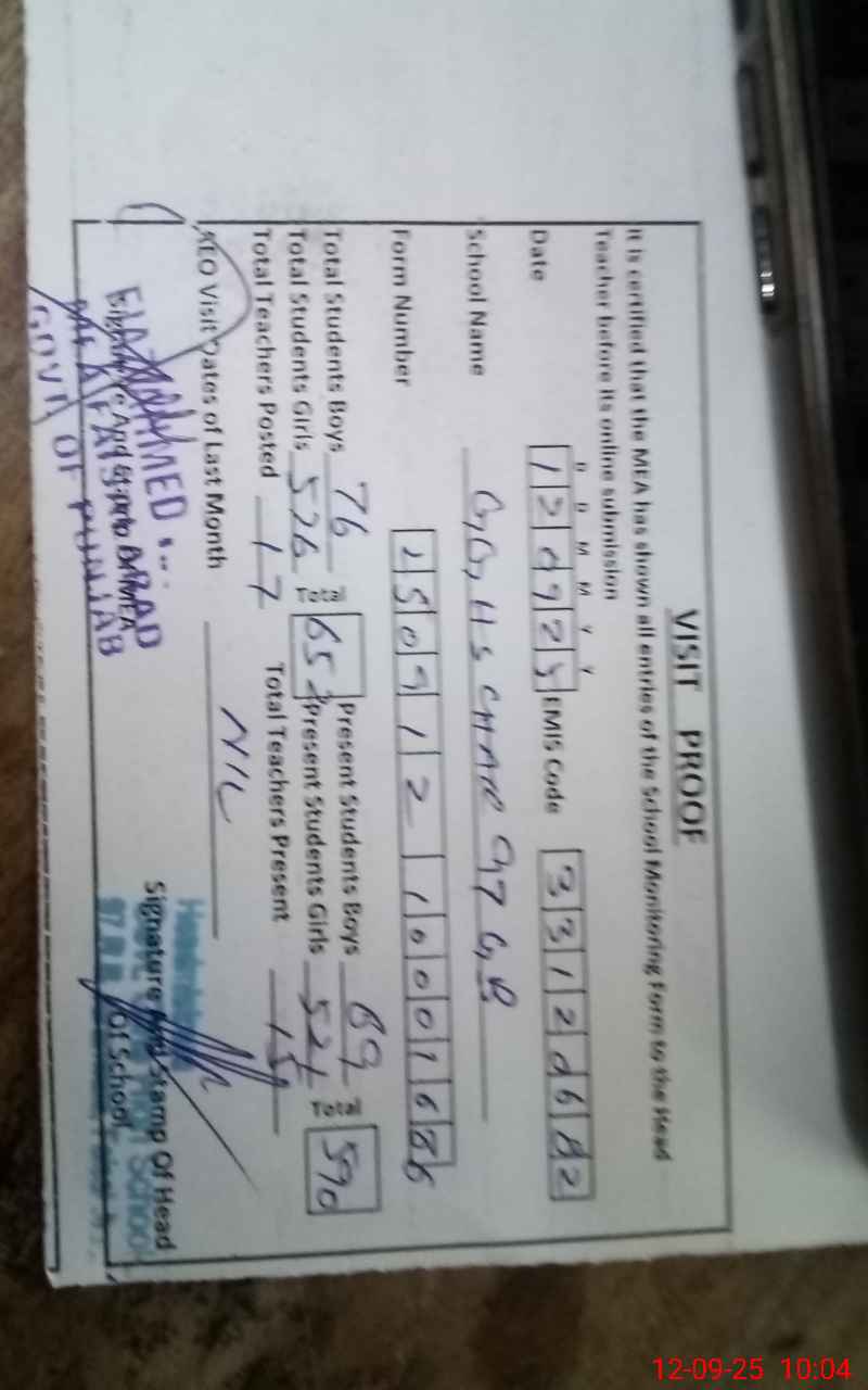 | Attendance Register | Head Teacher | MEA with School | Visit Proof |