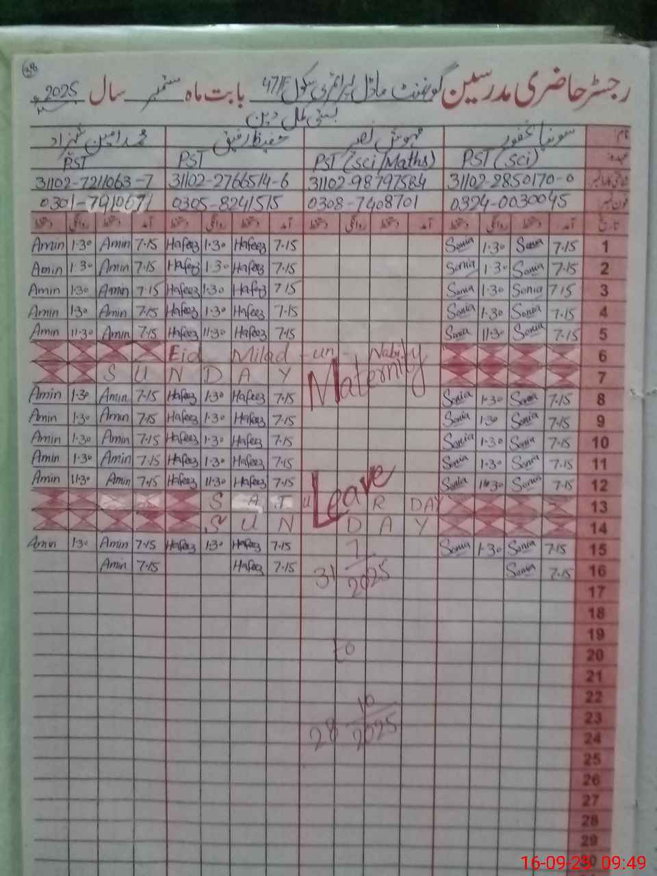 | Leave | Duty | Absent | Maternity | Medical | Ex- Pak |