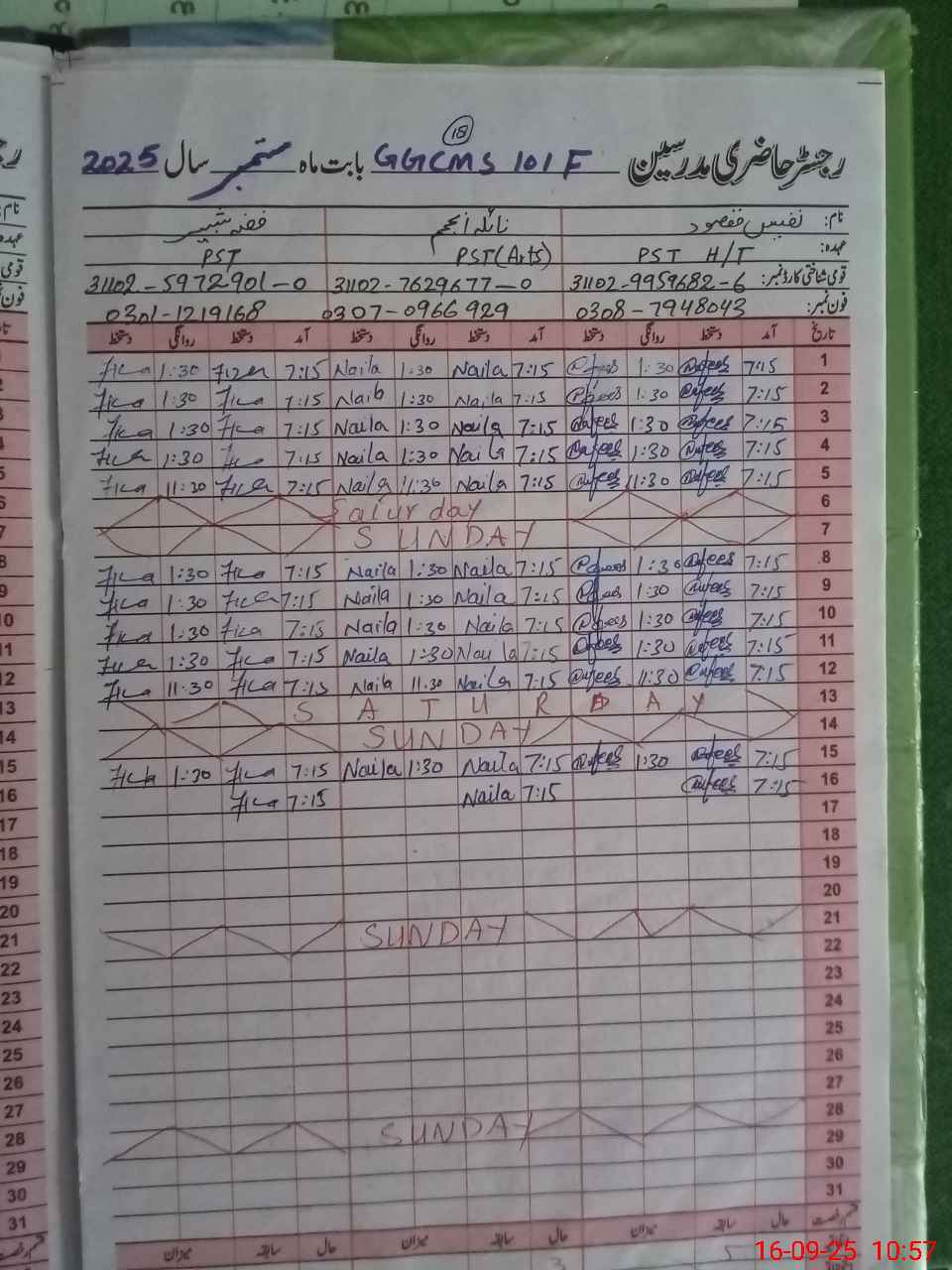 | Name: NA**** MA**** Designation: (School Headmaster's/Headmistress's) PST Phone/Cell Number: 03**** |