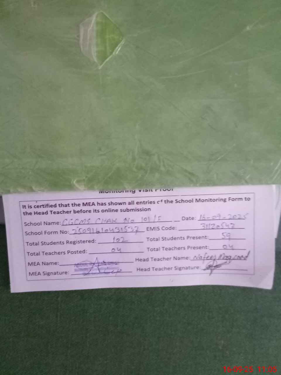 | EMIS Code: 31120547 | Name of School: GGCMS CHAK NO. 101/F | |||