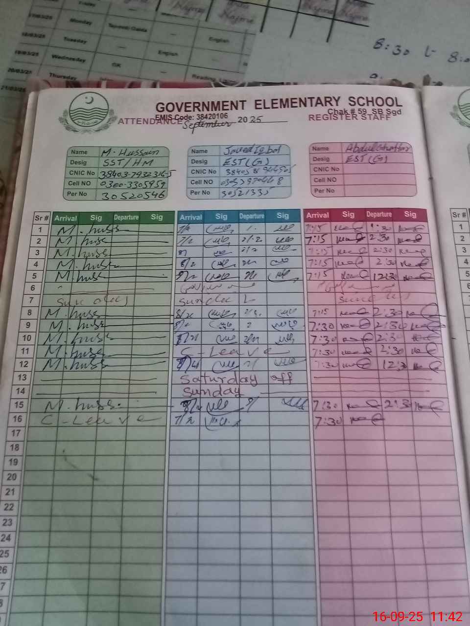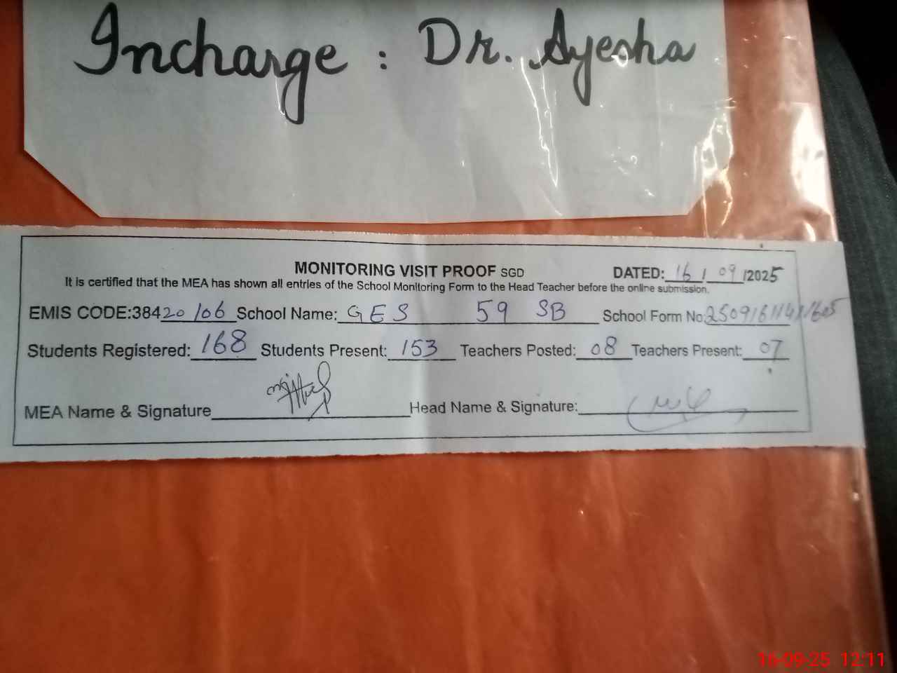| EMIS Code: 38420106 | Name of School: GES CHAK NO.59 SB | |||