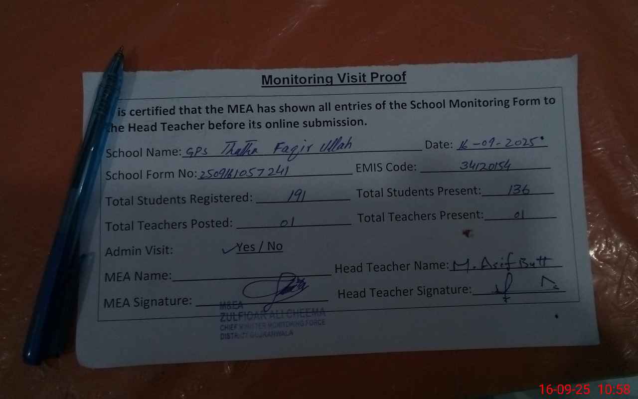 | EMIS Code: 34120154 | Name of School: GPS THATHA FIQIR ULLAH | |||