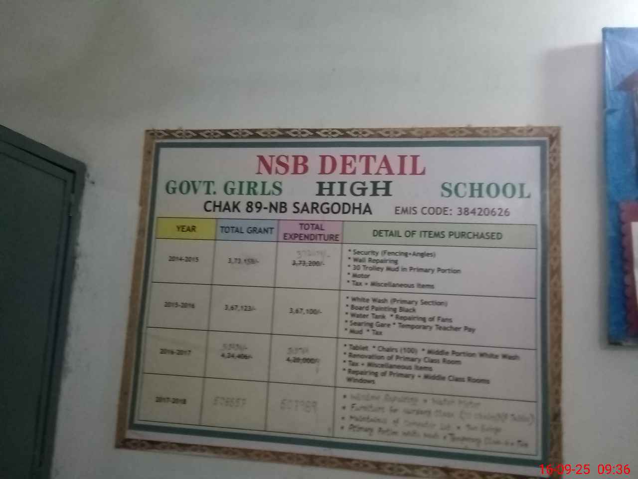 | EMIS Code: 38420626 | Name of School: GGHS CHAK NO.89 NB | |||