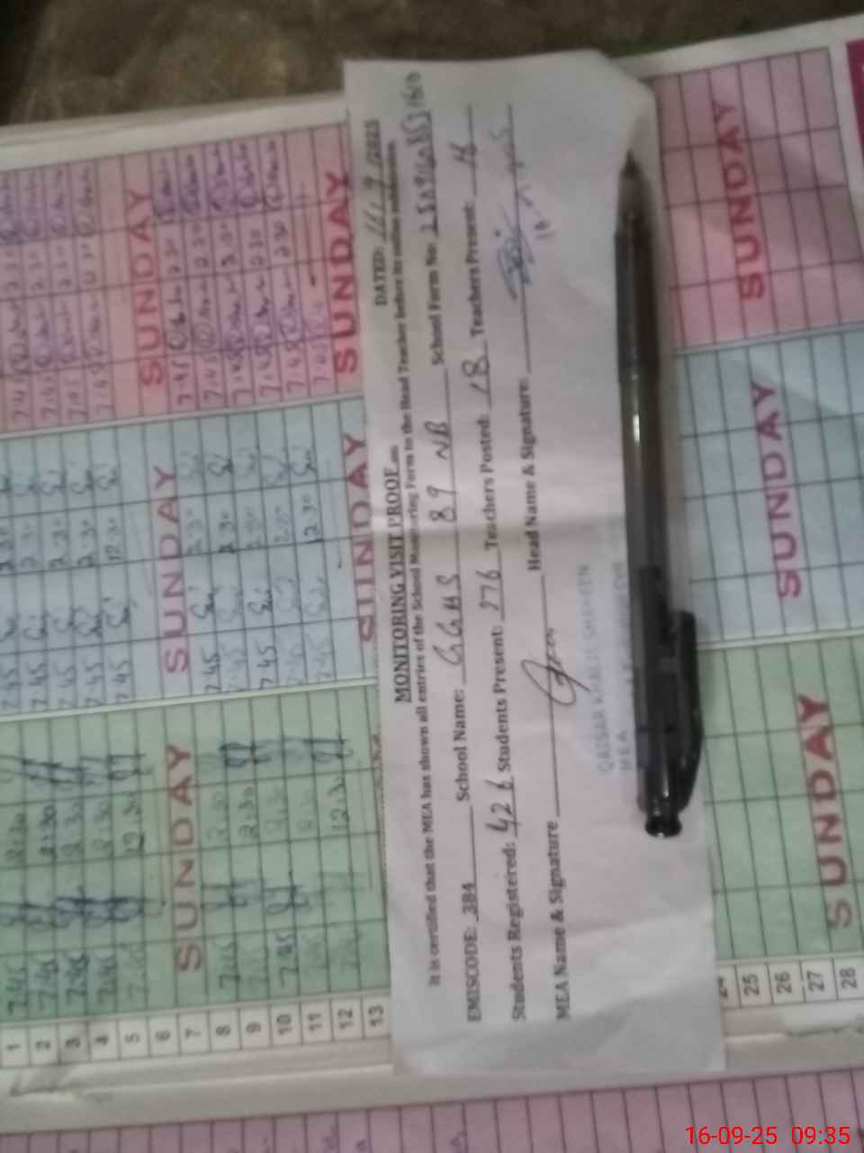 | Attendance Register | Head Teacher | MEA with School | Visit Proof |