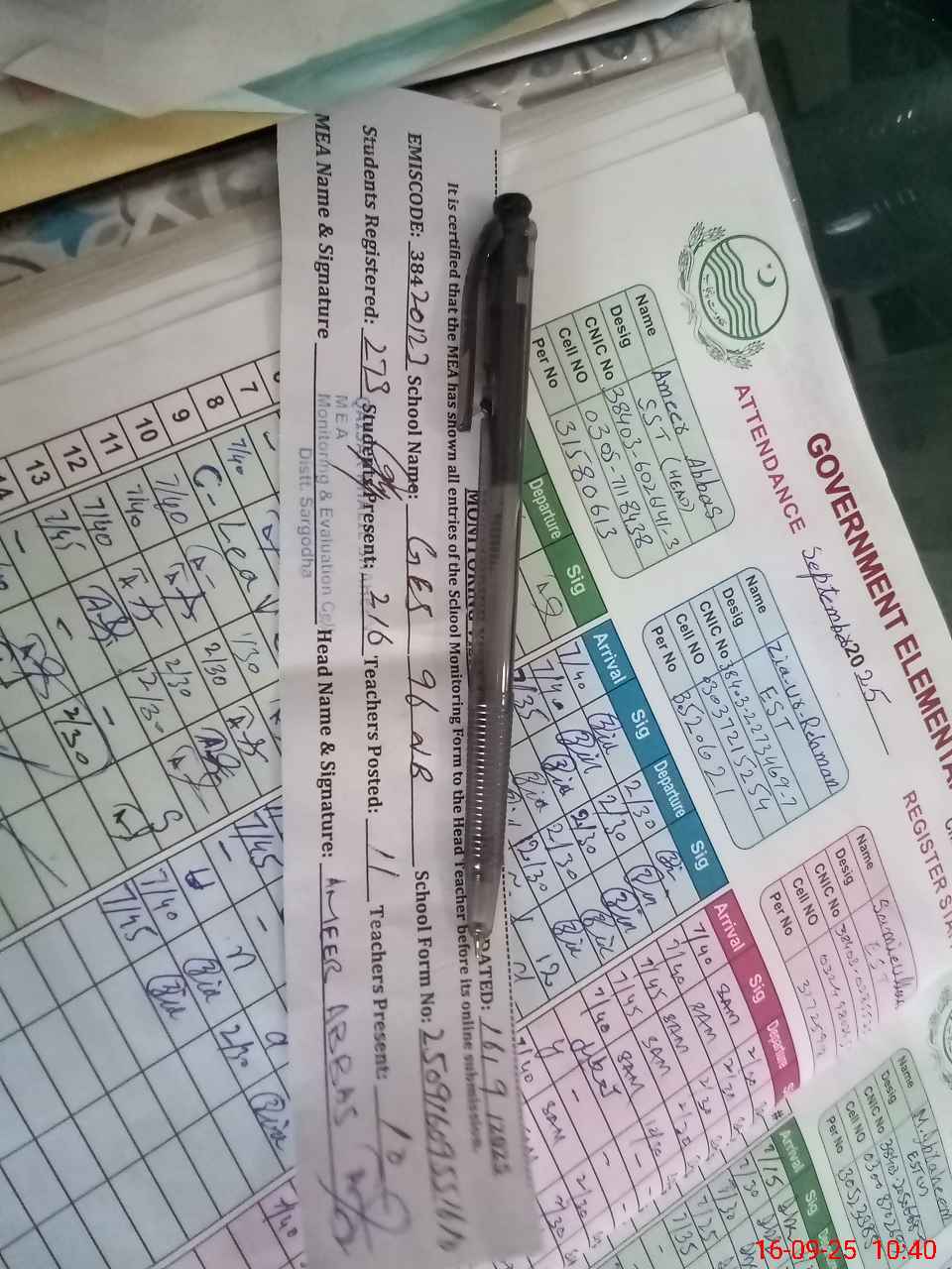 | Name: AM**** AB**** Designation: (School Headmaster's/Headmistress's) SST Phone/Cell Number: 03**** |