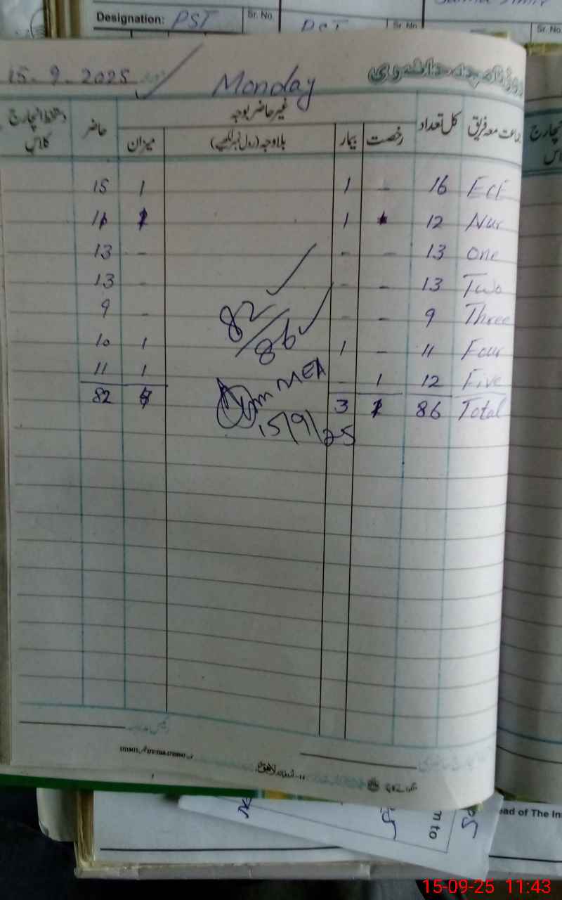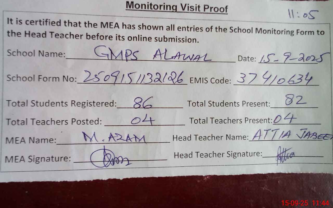 | Attendance Register | Head Teacher | MEA with School | Visit Proof |