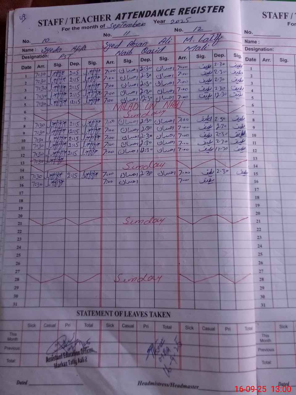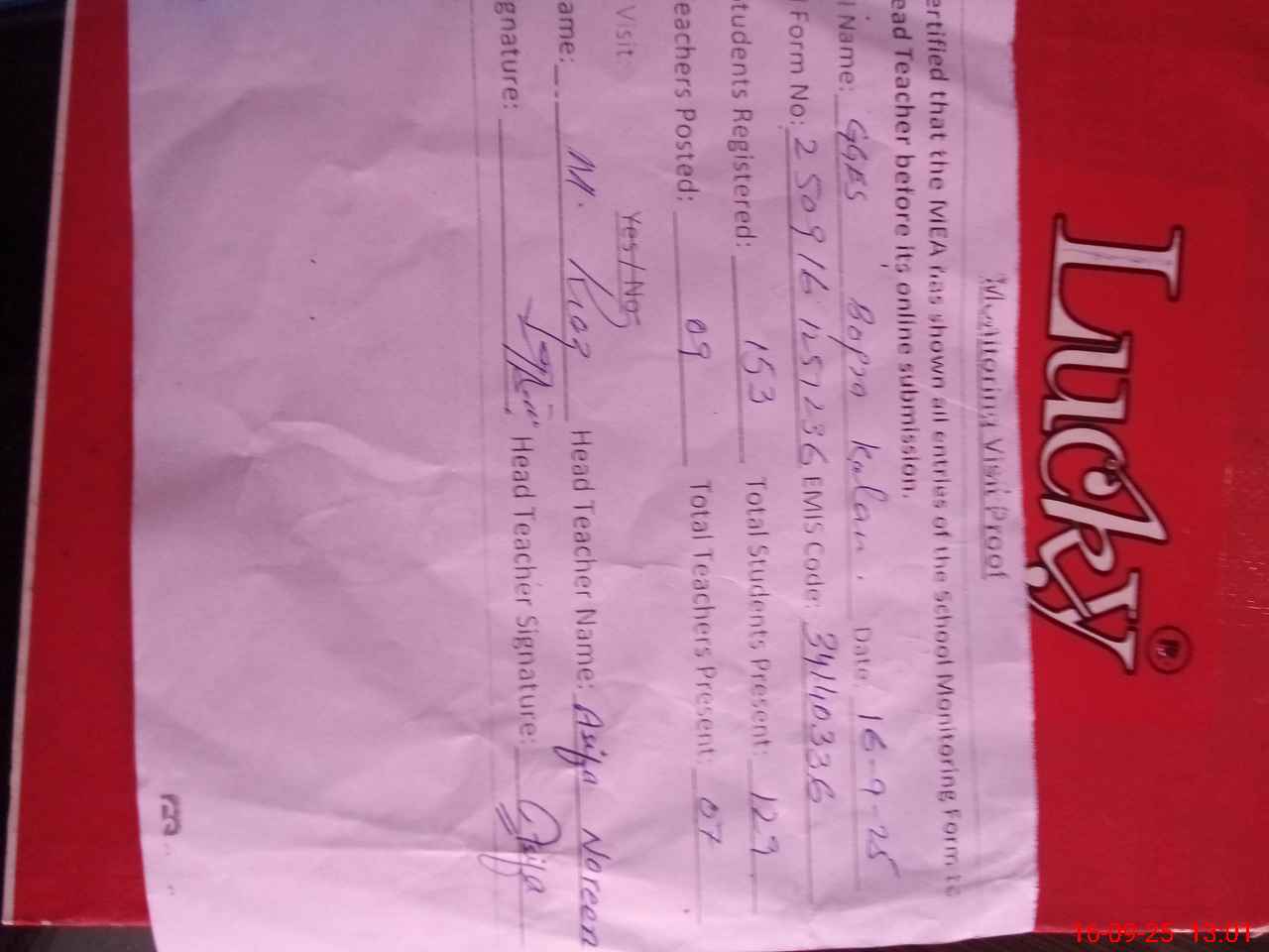| Name: As**** No**** Designation: (School Headmaster's/Headmistress's) SST Phone/Cell Number: 03**** |