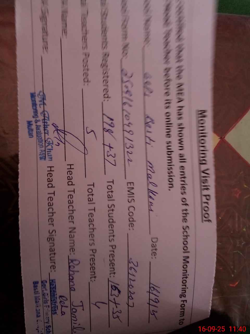 | EMIS Code: 36120207 | Name of School: GGPS BASTI MALKANA SHUJABAD DISTT. MULTAN | |||
