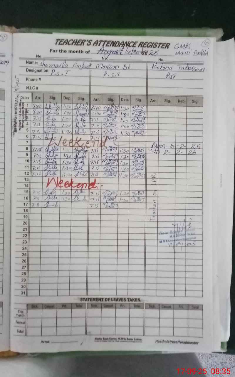 | Remarks (Use Separate Page if Required): A confliction found between student attendance register and roznamcha even sis as told by teacher Hm told to please remove the errors | |||||