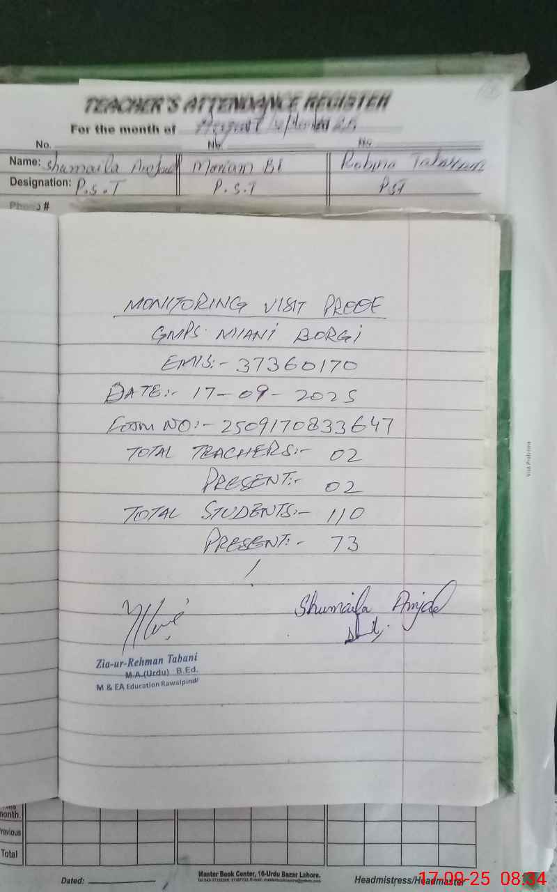 | Attendance Register | Head Teacher | MEA with School | Visit Proof |