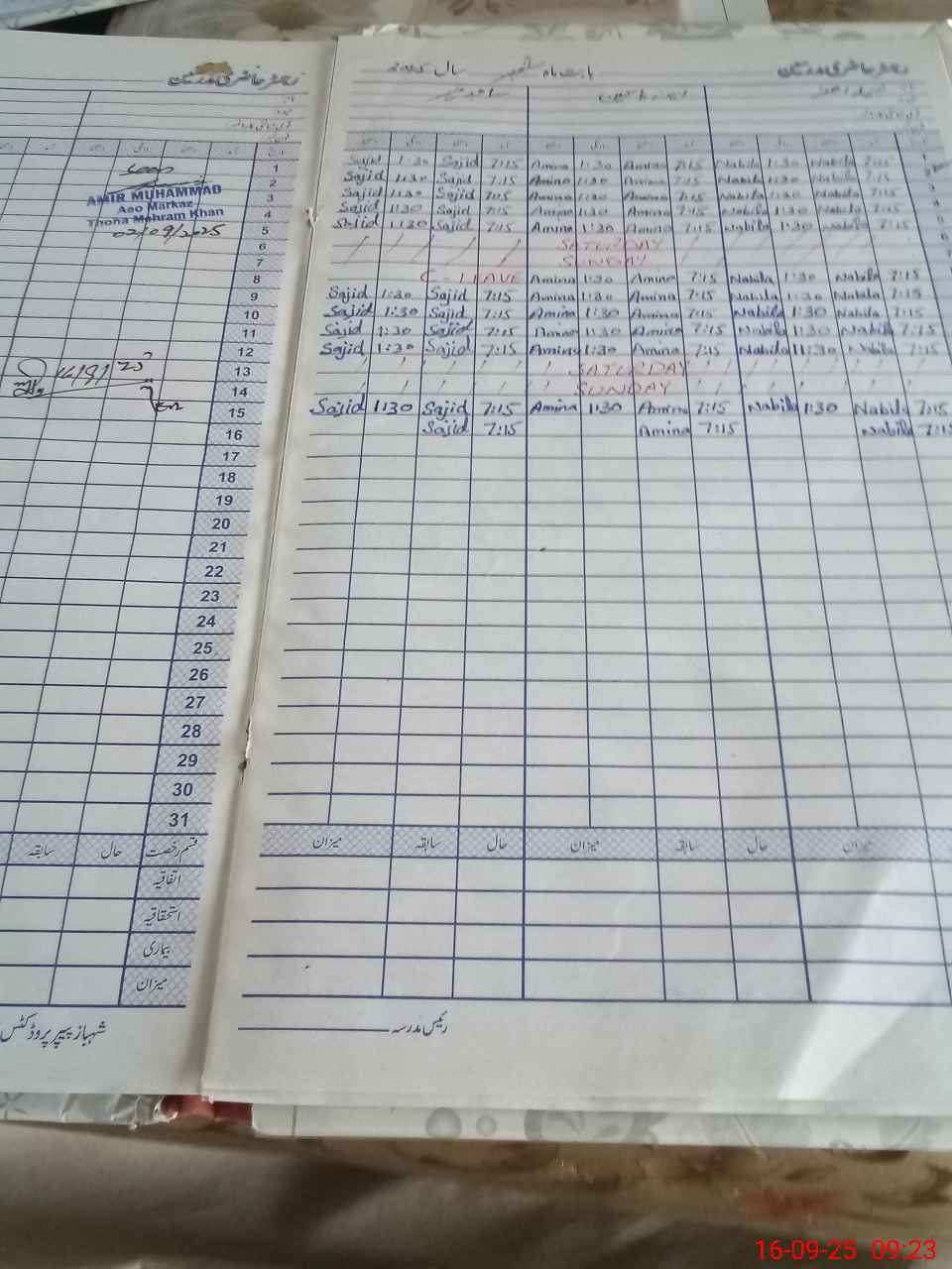 | CNIC | Full Name | Designation | R/C | Absence During Last Calender Month |
