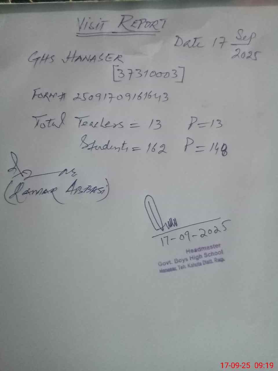 | EMIS Code: 37310003 | Name of School: GHS HANESAR | |||