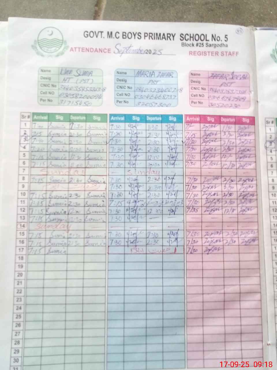 | Name: ZA**** IQ**** Designation: (School Headmaster's/Headmistress's) PST Phone/Cell Number: 03**** |