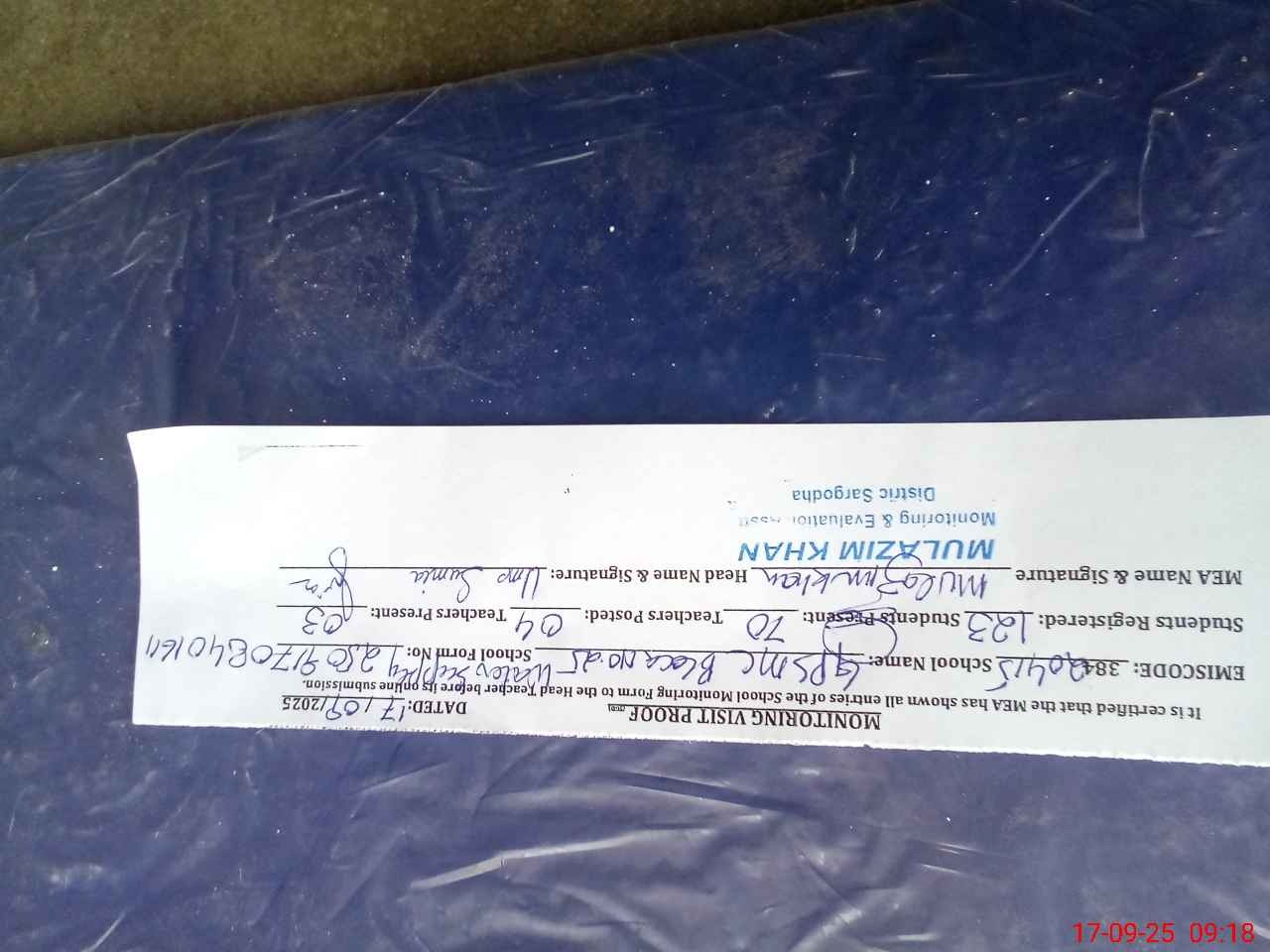 | Attendance Register | Head Teacher | MEA with School | Visit Proof |