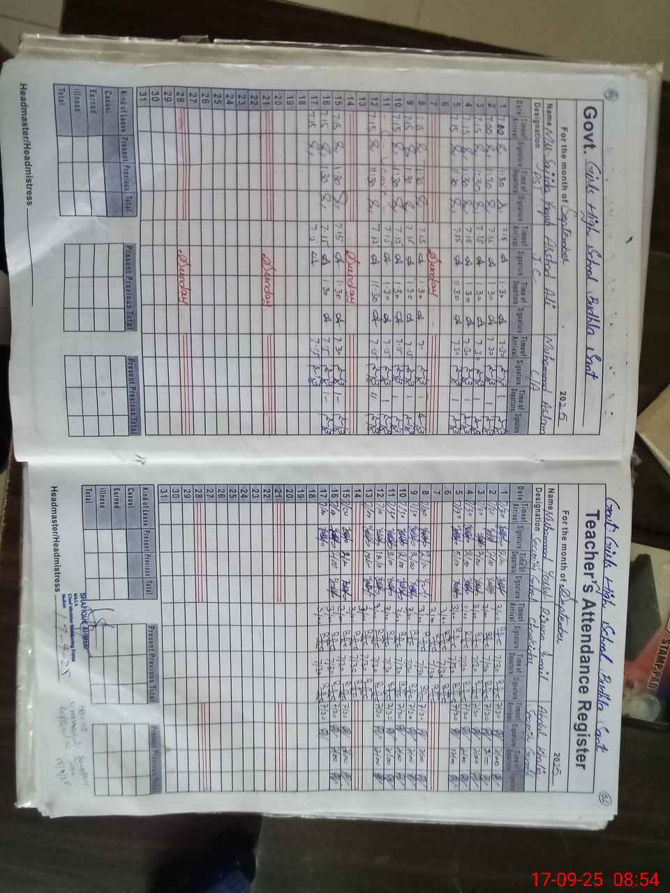 | Name: HI**** SH**** Designation: (School Headmaster's/Headmistress's) INCHARGE. SST SC Phone/Cell Number: 03**** |
