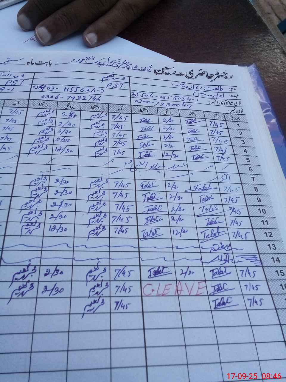 | Name: TA**** EJ**** Designation: (School Headmaster's/Headmistress's) ESE Sci-math Phone/Cell Number: 03**** |