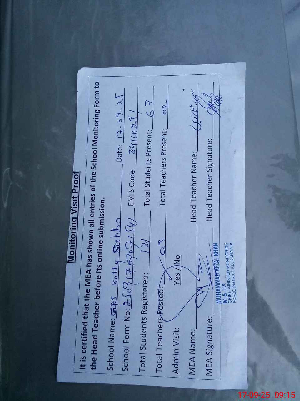 | EMIS Code: 34110251 | Name of School: GPS KOTLI SAHBO | |||