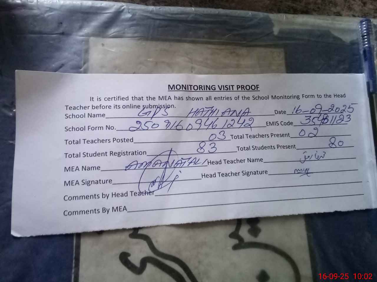 | EMIS Code: 35431123 | Name of School: GPS HATHIANA | |||