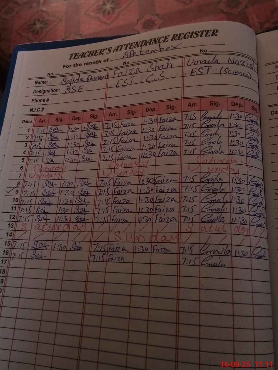 | Name: SA**** PE**** Designation: (School Headmaster's/Headmistress's) S S E ( Eng ) Phone/Cell Number: 03**** |