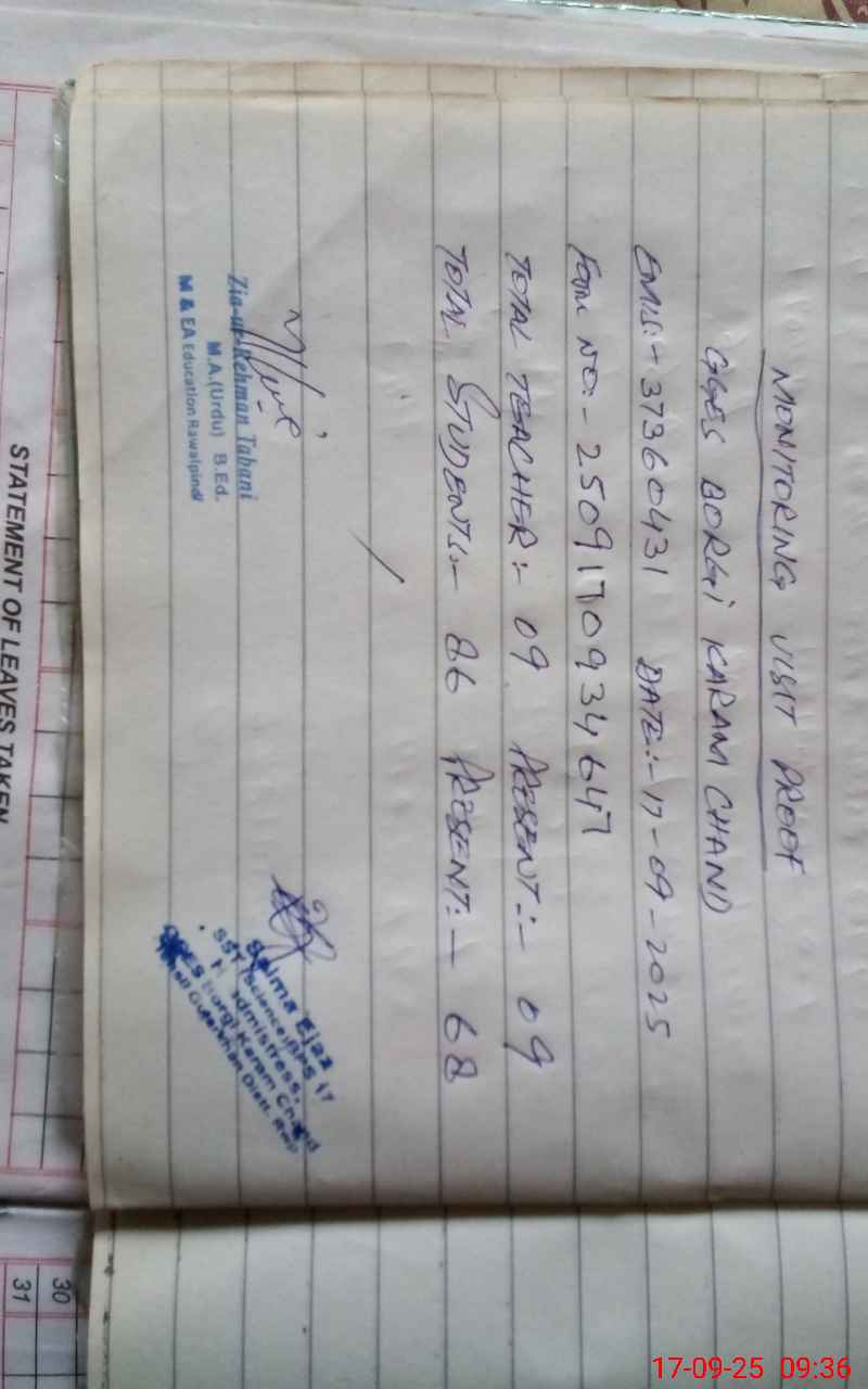 | EMIS Code: 37360431 | Name of School: GGES BORGI KARAM CHAND | |||