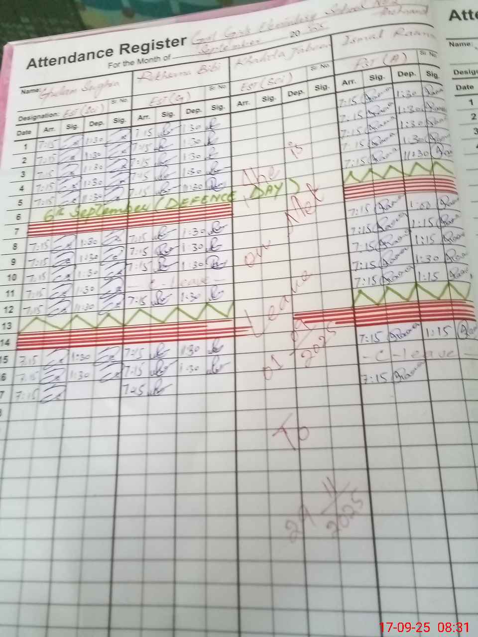 | Monitoring Date: 17-09-2025 | Start Time: 17-09-2025 07:50 AM | End Time: 17-09-2025 08:59 AM | Name of MEA: Am**** Kh**** | |