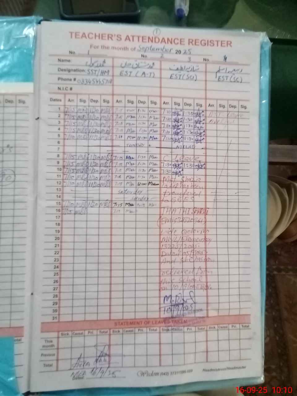 | Name: MO**** RA**** Designation: (School Headmaster's/Headmistress's) SST Phone/Cell Number: 03**** |