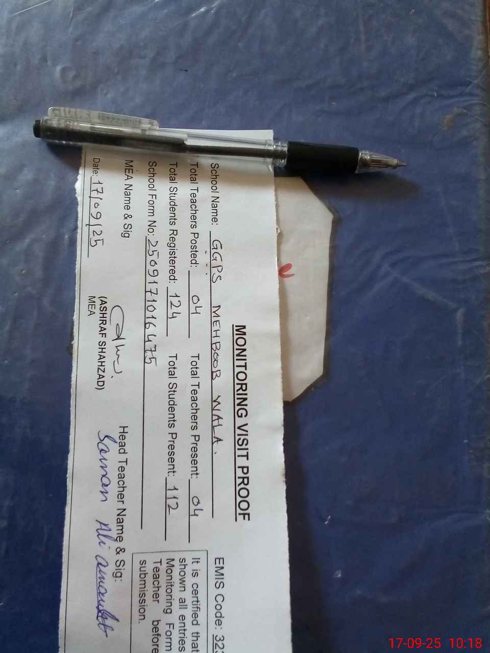 | EMIS Code: 32330381 | Name of School: GGPS MAHBOOB WALA | |||