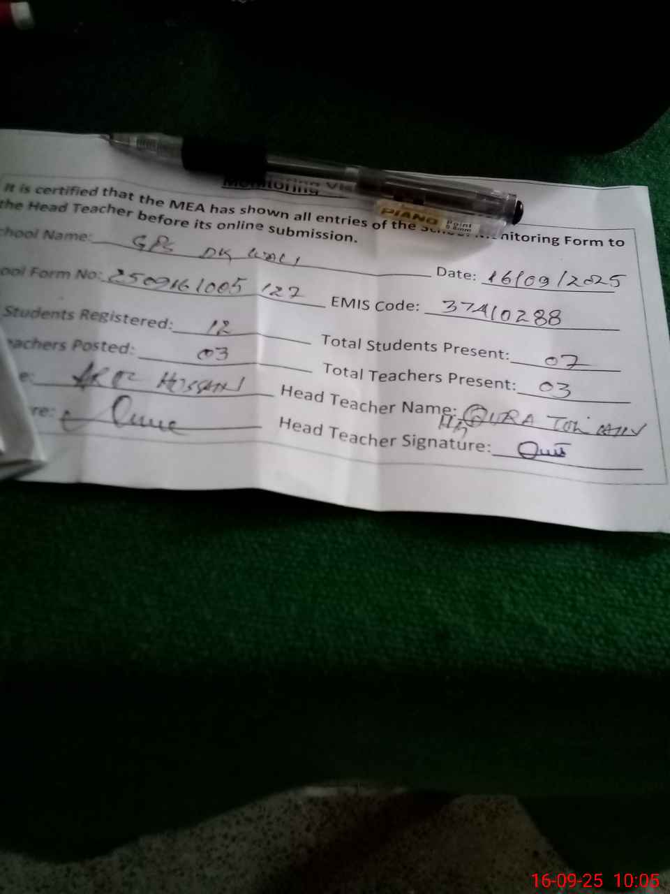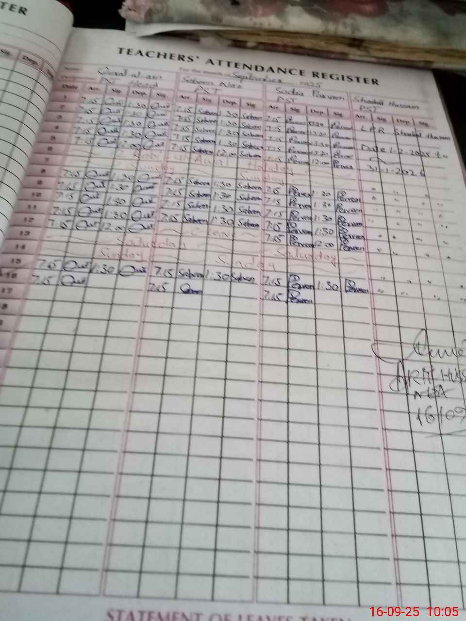 | Name: Am**** Ha**** Designation: (School Headmaster's/Headmistress's) HEADMISTRESS Phone/Cell Number: 03**** |