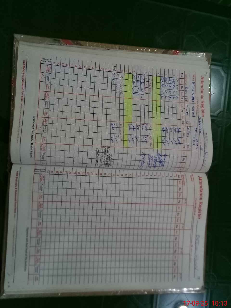 | CNIC | Full Name | Designation | R/C | Absence During Last Calender Month |