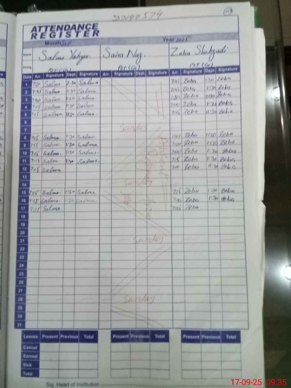 | 33**** | Sa**** Na**** | PST | Regular | 0 | 0 | 31 | 0 | 0 | 0 | 0 | 0 | 0 | Absent (Un-Authorized) |