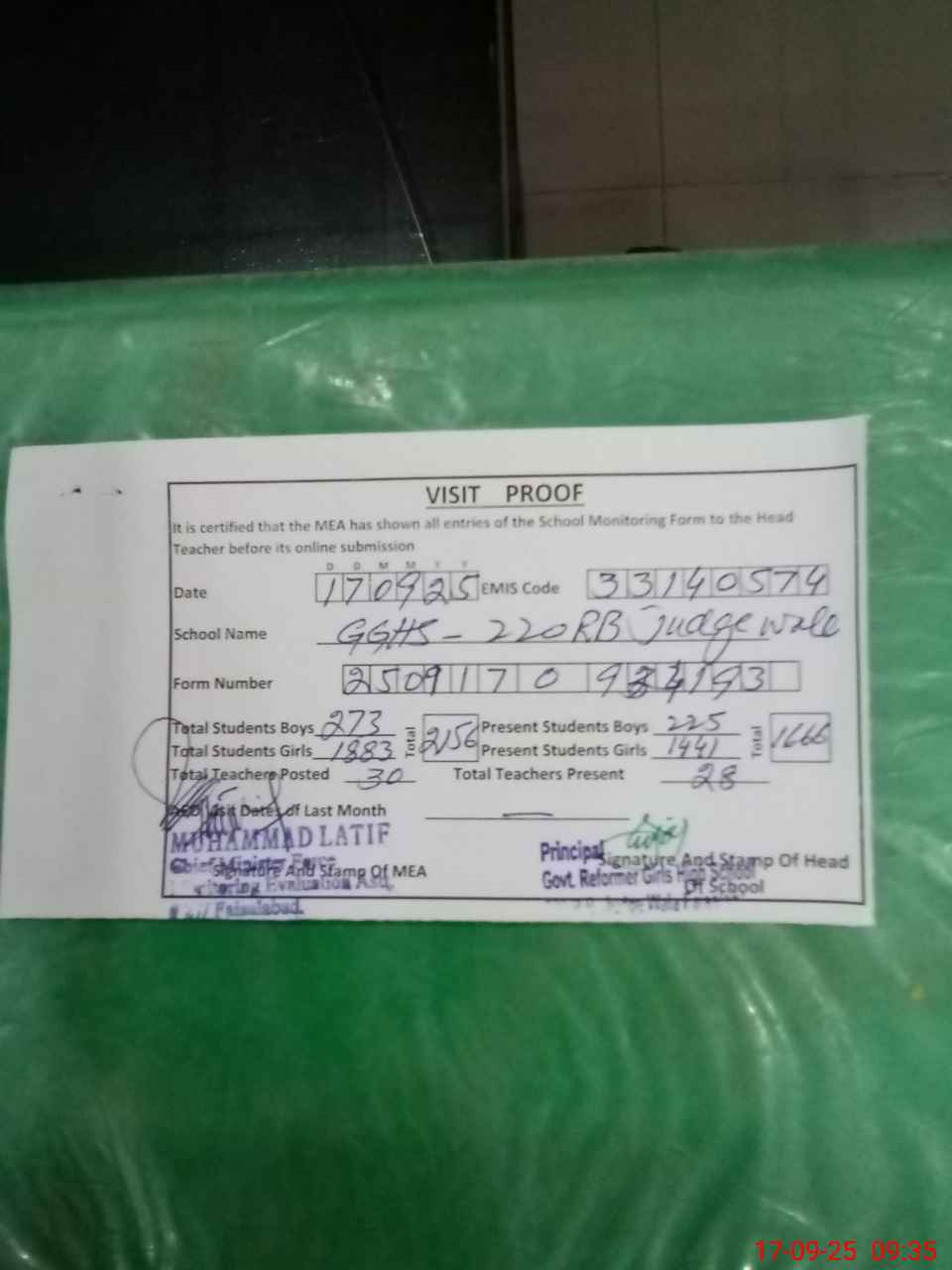 | EMIS Code: 33140574 | Name of School: GGHS REFORMAR 220 RB JUDGE WALA | |||