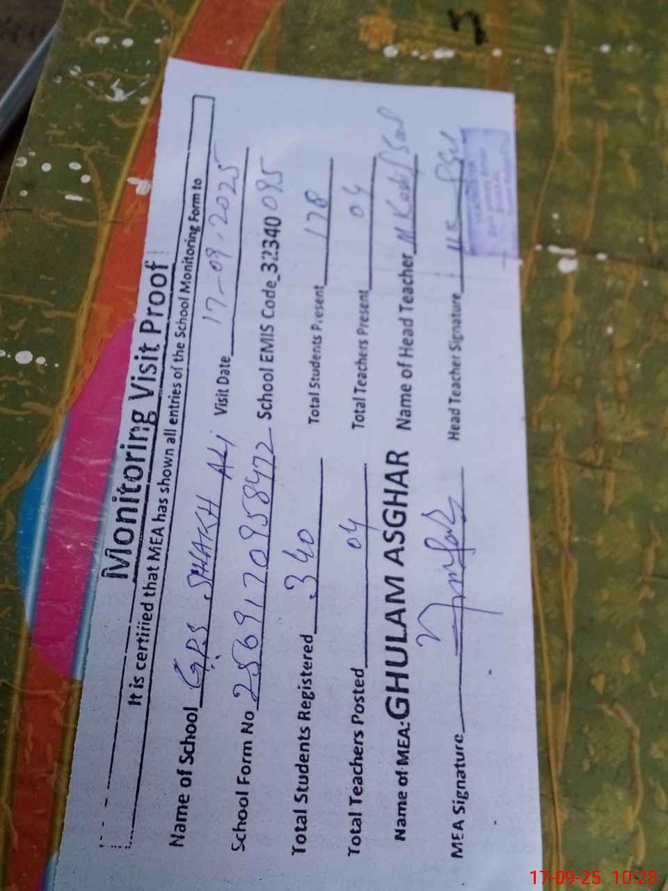| EMIS Code: 32340095 | Name of School: GPS SHEIKH ALI | |||