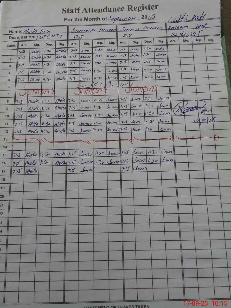 | Name: AB**** BI**** Designation: (School Headmaster's/Headmistress's) PST Phone/Cell Number: 03**** |