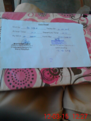 | Monitoring Date: 12-03-2015 | Start Time: 12-03-2015 12:08 PM | End Time: 12-03-2015 12:27 PM | Name of MEA: Mu**** Ab**** | |